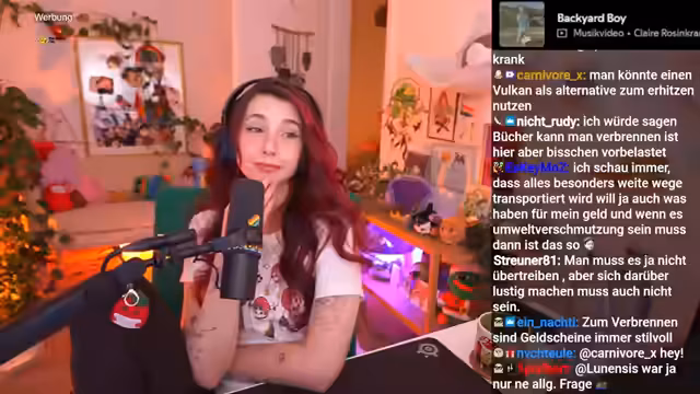 06:20:05Während der Reise durch eine neue, neblige Gegend, die an den Planeten Pandora erinnert, wird die angespannte Atmosphäre betont. Die schlechte Sichtweite durch Nebel führt zu einer ähnlichen Angst wie das Ungefähre unter dem Bett. Der Streamer sammelt fleißig Kräuter, wobei er sich über die Namensgebung zweier ähnlicher Dinosaurierarten lustig macht. Im Chat werden Vorschläge für Spielinhalte wie Portal-Zauberstäbe besprochen und der Streamer reagiert humorvoll auf den Wunsch nach einem Autogramm, wobei er eine plausible Ausrede für seine Abwesenheit erfindet.