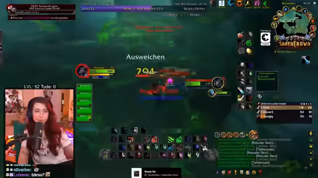 00:52:52Nachdem der Streamer gelesen hat, dass die Community sich bei den WoW-Streams im Großen und Ganzen sehr positiv und verständnisvoll verhält, kommentiert er die toxischen Kommentare, die einige Spielerinnen nach dem Tod ihres Charakters erhielten. Er findet es unverständlich und beunruhigend, dass Menschen in so emotionalen Momenten herablassend reagieren. Um die Stimmung zu beleben, startet er eine Kanalpunkte-Umfrage mit der Frage, ob die Zuschauer glauben, dass er im Stream sterben wird.