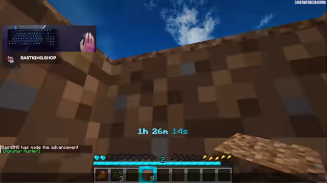 01:18:10Die dritte Nacht bricht an und die Falle funktioniert zuverlässiger. Der Streamer sammelt weiterhin Rotten Fleisch, ist aber immer knapp an Herzen. Parallel dazu interagiert er stark mit dem Chat, um verschiedene Quizrunden zu spielen. Dabei geht es darum, Minecraft-Versionen anhand von Kreaturen und Blöcken zu erraten, was den Stream unterhaltsamer gestaltet.