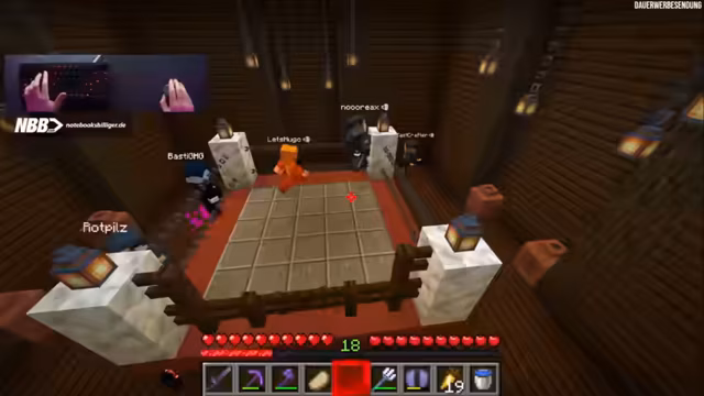 09:03:49Heiko beginnt seinen ersten Versuch im Escape Room und entdeckt sofort einen Kessel, einen Ofen und einen Crafting Table. Er findet verwirrende Items wie gelben Farbstoff, verrottetes Fleisch und Sand. Die Partikel eines kalibrierten Skulk-Sensors werden bemerkt, was auf eine versteckte Mechanik hindeutet. Heiko versucht, die Funktion der Items und Blöcke zu verstehen, während er überlegt, wie er an den Crafting Table hinter dem Kessel gelangen kann. Die Möglichkeit, das verrottete Fleisch zu essen, um Hunger zu erzeugen, wird in Betracht gezogen, aber die Unsicherheit über die Auswirkungen hält ihn zurück. Die Zuschauer im Chat versuchen, Tipps zu geben, aber es wird betont, dass Heiko selbst auf die Lösung kommen soll. Die Herausforderung besteht darin, die versteckten Interaktionen und die Bedeutung der verwirrenden Items zu entschlüsseln, um im Escape Room voranzukommen.