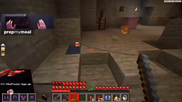 09:20:40Im nächsten Raum entdeckt der Streamer Shulker-Boxen und Trapdoors, die Hinweise für den weiteren Weg geben. Durch eine „Links-geht-Taktik“ findet er eine leuchtende Shulker-Box, die ihn in einen weiteren Raum fallen lässt. Dort findet er ein Bundle mit Papier, Gold und Sticks sowie Bambus. Die Suche nach Strings und einem Crafting Table beginnt, um eine Angel zu craften. Nach dem Fund eines Crafting Tables wird erfolgreich eine Angel hergestellt. Die Idee, Fisch zu angeln und auf einem Campfire zu braten, wird als mögliche Lösung für ein weiteres Rätsel in Betracht gezogen, wobei die Komplexität der Redstone-Schaltung diskutiert wird.