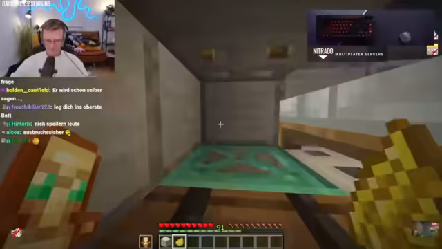 09:14:21Der Streamer beschäftigt sich intensiv mit den Rätseln des Escape Rooms. Er versucht, Hebel umzulegen und seine Zelle zu säubern, was zu Verwirrung führt, da er nicht sofort die Mechanik dahinter versteht. Ein Minecart mit einem Pottery-Shard wird entdeckt, doch es wird versehentlich in einen Block geschoben, was die Funktionalität beeinträchtigt. Das Rätsel um Sand und Glas wird gelöst, indem drei Glasflaschen geschmolzen werden, um eine leere Flasche zu craften. Diese Flasche wird anschließend an einer tropfenden Stelle mit Wasser gefüllt, was den Zugang zum nächsten Raum ermöglicht. Die Schwierigkeit des Rätsels wird als angemessen empfunden, und die cleveren Mechaniken, wie das Tropfen des Wassers, werden gelobt.