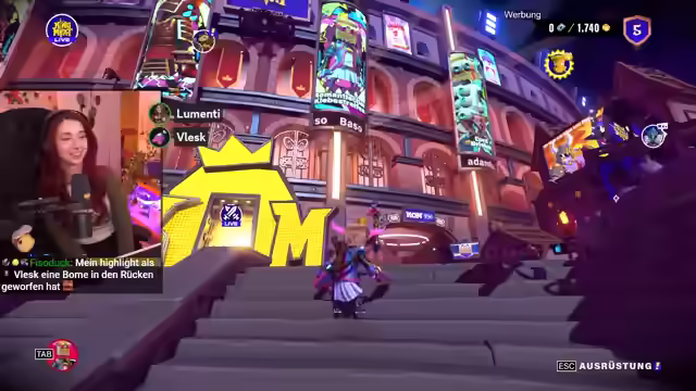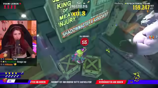 01:10:26Die Streamerin startet eine Runde im Multiplayer-Modus von "King of Meat" und ist gespannt, wie es sich spielt. Sie und ihre Mitspieler stimmen für einen Dungeon ab. Sie werden von Curved Beak begrüßt, der die heutige Folge als explosiv ankündigt. Die Streamerin reduziert die Lautstärke des Sprechers, um die Kommunikation nicht zu stören. Sie erklärt einen Bounce Move, den sie im Tutorial nicht gelernt hat. Es wird festgestellt, dass man mit einer Armbrust schießen kann. Die Streamerin und ihre Mitspieler müssen gemeinsam auf Plattformen bouncen, um weiterzukommen. Es gibt Schwierigkeiten mit herunterfallenden Bodenplatten und einem Riesenball. Die Streamerin ist von der Wildheit des Spiels überrascht und überfordert. Sie und ihre Mitspieler blockieren sich gegenseitig beim Hüpfen. Ein Zuschauer äußert, dass er das Spiel nicht versteht, woraufhin die Streamerin entgegnet, dass man einfach nur draufhauen muss.