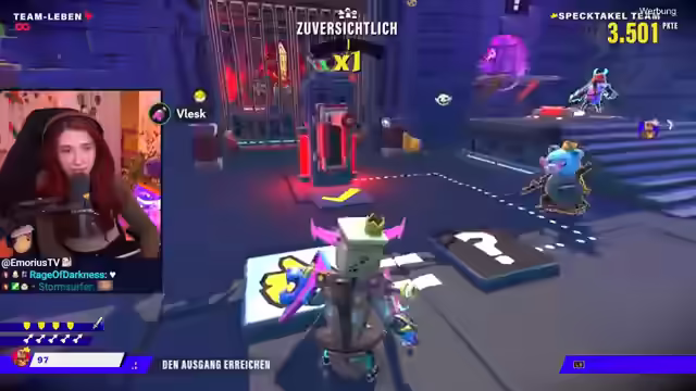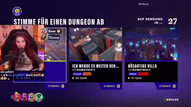 02:58:44Nach dem Abschluss des Dungeons werden Belohnungen verteilt und neue Outfits freigeschaltet. Die Streamer bewundern die coolen Designs und freuen sich über die Fashion-Aspekte des Spiels. Es werden neue Waffen wie der Bombenwerfer entdeckt, aber die Streamerin bevorzugt weiterhin Schwert und Schild. Die Zuschauer werden erneut aufgefordert, die Links zum Spiel im Chat zu überprüfen und darauf zu klicken. Die Streamer betonen die Koop-Features des Spiels, bei dem man gemeinsam Dungeons bauen und mit anderen Spielern teilen kann. Es gibt auch Solo-Level und eine Matchmaking-Funktion für zufällige Mitspieler. Das Spiel ist auf PC, Xbox und Playstation verfügbar und unterstützt Crossplay. Die Streamer erwähnen ein bevorstehendes Turnier mit anderen deutschen Streamern und diskutieren, welche Aspekte des Spiels ihnen am besten gefallen, wobei Plattformer, Dungeon und Kämpfen zur Auswahl stehen.