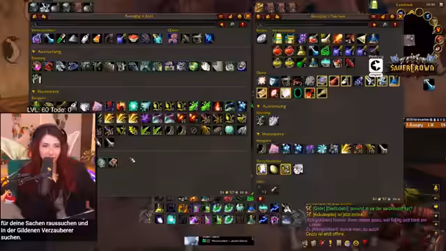 03:03:39Die Diskussion um die Raid-Rolle steht im Mittelpunkt. Die Streamerin entscheidet sich für Damage-Dealer (DD), da sie dies während des gesamten Levelings praktiziert hat und das Wechseln auf Heiler zu diesem späten Zeitpunkt die Raidvorbereitung zu komplizieren würde. Sie berücksichtigt, dass sie zwar die Grundlagen des Heilens kennt, aber nicht genug Erfahrung hat, um als Haupt-Heiler in einem ernsthaften Raid zu überzeugen. Parallel dazu bereitet sie sich auf den bevorstehenden Molten-Core-Raid vor und sortiert unnötige Quest-Items und Tränke in ihrer Bank aus, da der Platz knapp wird.