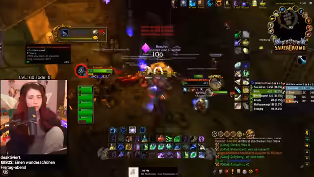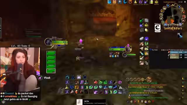 05:15:31Innerhalb des Dungeons werden die Aufgaben verteilt. Der Streamer als Healer ist neu in der Umgebung, während andere Gruppenmitglieder bereits Erfahrung mit BRD haben. Die Gruppe sammelt Loot und plant, bestimmte Bosse gezielt zu farmen, um benötigte Items wie den Kolben zu erhalten. Die Kommunikation im Chat ist wichtig, um Abläufe und Gefahren zu koordinieren.