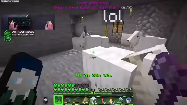 Es wurde die Zucht von seltenen Ziegen erfolgreich abgeschlossen. Daraufhin wurde das Achievement für alle Ziegenhörner abgeschlossen. Im Anschluss wurde mit den Vorbereitungen für den Kampf gegen den Enderdrachen begonnen, um Drachenatem für das nächste Ziel zu farmen.