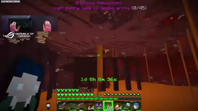01:51:20Die Reise durch den Nether führt zu einem Braustand, der als temporäre Anlage dient. Hier wird Blaze Powder gesammelt, da es für weitere Vorhaben essentiell ist. Der Streamer plant, für längere Zeit im Nether zu bleiben und stellt eine Einkaufsliste auf, die zeigt, dass noch weitere Ressourcen benötigt werden. Auch der Transport von Warzen wird erwähnt, was auf langfristige Projekte im Nether hindeutet. All dies ist Teil des fortlaufenden XXL-Projekts, bei dem nach und nach alle notwendigen Materialien zusammengetragen werden.