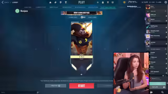 04:15:29Es wird überlegt, ob ein gemeinsamer Chat für die Mädchen während des Streams eingerichtet werden soll. Asta hat weiterhin Probleme mit dem Spielstart und führt einen PC-Neustart durch. Es wird über Best-of-Three-Matches gesprochen, wobei der Fokus darauf liegt, wer zuerst seine technischen Probleme beheben kann. Die Streamer sprechen über unerwartete Schmerzen im Gaumen durch den Konsum von Lutschbonbons. Es wird überlegt, ob die Map Bind gewählt werden soll, da diese für Neulinge besser geeignet ist als Haven mit ihren drei Spots. Eine Fun-Trainingsrunde wird gestartet, um die Zeit zu überbrücken, während auf die Lösung der technischen Probleme gewartet wird. Es wird überlegt, ob alle Dualisten spielen sollen und Trash-Talk wird angekündigt, während Kim weiterhin versucht, das Spiel zum Laufen zu bringen.