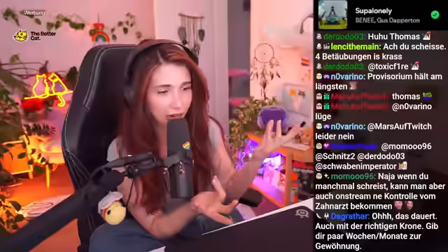 00:16:01Freude auf den heutigen Stream, um von einem doofen Tag abzulenken. Der Plan umfasst drei Stunden Quatschen, eventuell eine Reaction und eine Runde Geo-Guessr, gefolgt von einem Valorant-Match Jungs gegen Mädchen um 21:30 Uhr. Der Stream dient als willkommene Ablenkung und Möglichkeit, einen guten Abend zu verbringen. Am Dienstag wurden bereits drei Kleidungsstücke als Vorbelohnung für den Zahnarzttermin gekauft, da finanzielle Verantwortung nicht immer Priorität hat. Die anstehenden Placements im Stream sollen die Belohnungen, die Therapie und den kostspieligen Zahnarztbesuch finanzieren. Der Zahnarzttermin am Vortag war traumatisch, da eine Krone eingesetzt werden musste. Aufgrund einer depressiven Phase in der Vergangenheit wurde die Zahnhygiene vernachlässigt, was nun zu dieser Behandlung führte. Der Prozess beinhaltete das Abschleifen des Zahns, was aufgrund der Geräuschempfindlichkeit sehr belastend war. Trotz der Schmerzen und Unannehmlichkeiten wurde die Behandlung fortgesetzt, um langfristige Probleme zu vermeiden.