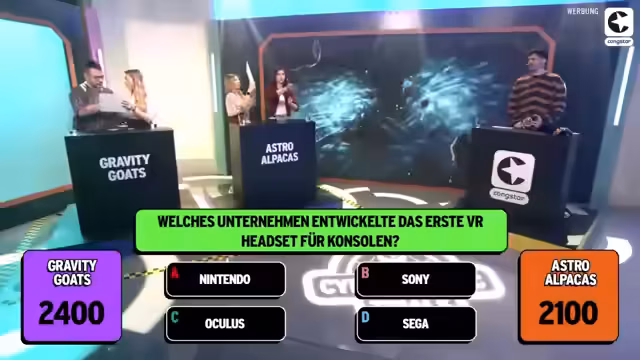 00:31:10Das erste Spiel ist eine Mischung aus Jeopardy und Familienduell. Es gibt vier Kategorien mit drei verschiedenen Frageleveln. Bei den 100-Punkte-Fragen kommt der Buzzer ins Spiel, wobei das andere Team die Möglichkeit hat, die Frage ebenfalls zu beantworten. Bei den 200-Punkte-Fragen handelt es sich um A/B-Fragen, bei denen die Teilnehmer einschätzen müssen, wie die Community abgestimmt hat. Bei den 300-Punkte-Fragen sucht man die Top-3-Antworten aus dem Chat. Die Teams spielen Schnick, Schnack, Schnuck, um zu entscheiden, wer beginnt. Die Astro-Alpakas wählen die Kategorie 'Mystery Chat sagt' und müssen erraten, welche Videospiel-Fortsetzung sich die Community am meisten wünscht. Nach mehreren Fehlversuchen und Hinweisen entscheiden sie sich für Half-Life 3, ein neues Elder Scrolls und Black and White. Die Gravity Goals wählen 'Helden und Legenden' und die A/B-Frage, wer der coolere Held ist: Nathan Drake oder Lara Croft. Sie entscheiden sich für Lara Croft und erhalten die ersten 200 Punkte.