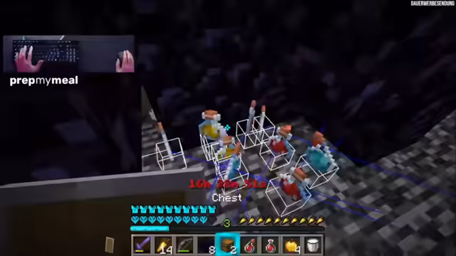 04:02:22Die letzten vor dem Kampf notwendigen Ressourcen werden gesammelt, darunter Goldkarotten als effizientes Nahrungsmittel und Milcheimer für den Wither-Effekt. Die Heil-Tränke sind knapp, weshalb die Option, Blumen in Pilze zu verwandeln, um Regeneration zu erzeugen, geprüft wird. Der Kampfbeginn wird auf halb zwölf nachts angesetzt, und der Streamer betont, dass der Kampf eventuell mehrere Stunden dauern könnte. Die Ausrüstung wird nun endgültig zusammengetragen.
