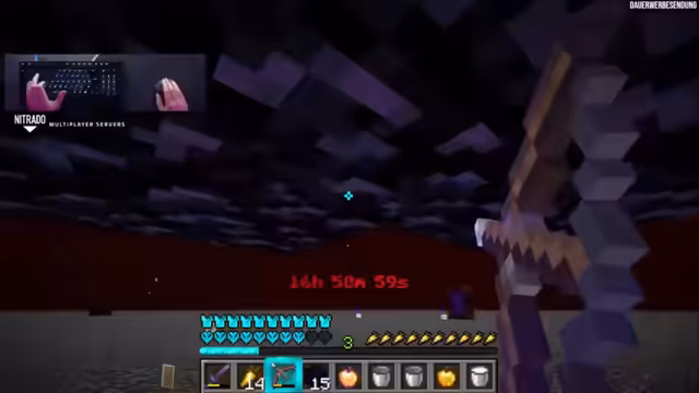 02:56:21Aufgrund der geringen Haltbarkeit der Netherite-Rüstung wird eine Farm von Ancient Debris unternommen, um Reparaturen durchzuführen. Dabei wird darauf geachtet, die Effizienz durch das Absuchen mehrerer Chunks zu maximieren. Gleichzeitig wird der Mangel an Mending für Ausrüstung kritisch diskutiert, da die Villagerpreise in der Ultra-Hardcore-Umgebung das 100-fache betragen und die Anschaffung unmöglich machen. Die Ausrüstung muss also ohne diese Qualität auskommen.