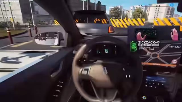 00:33:53Der Streamer richtet sein Taxi ein, indem er die Klimaanlage, das Radio mit einer persönlichen Playlist und die Scheibenwischer aktiviert. Die erste Fahrt mit dem Kunden "Erika Bailey" beginnt, die jedoch durch den chaotischen Stadtverkehr und einen Unfall mit der Konkurrenz verzögert wird. Während der Fahrt stellt der Streamer seinen gefühlvollen Service in den Vordergrund, indem er den Kunden nach Wünschen fragt. Trotz eines unfallfreien Transports erhält er für die Fahrt kein Trinkgeld, was ihn überrascht und etwas enttäuscht.