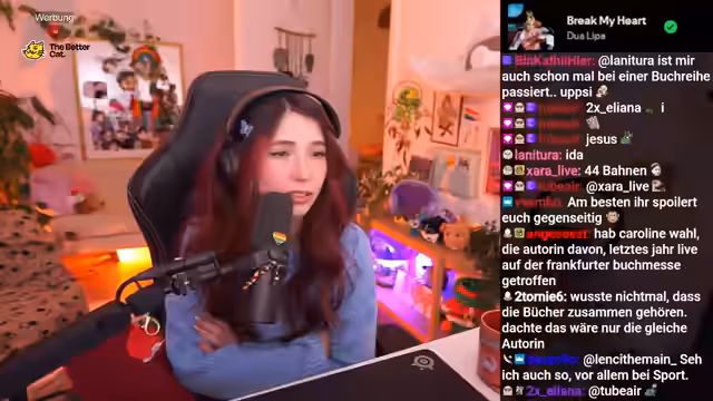 01:03:25Ein Zuschauer stellt eine Frage zur Buchreihe '22 Bahnen' und 'Windstärke 17' und fragt, ob es sich lohnt, den ersten Band zu lesen, wenn man versehentlich den zweiten zuerst gelesen hat. Der Streamer antwortet, dass es sich lohnt, da die Bücher nicht zu lang sind und man so die Vorgeschichte nachholen kann. Er betont seine Freude an Buchfragen im Chat und kündigt an, wieder auf Buchmessen gehen zu wollen, falls die Zeit es zulässt. Zudem erwähnt er sein aktuelles Hörbuchprojekt 'The Will of the Many', für das er nach der gebundenen deutschen Ausgabe sucht.