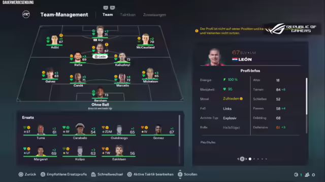 03:07:59Es wird über den aktuellen Stand der FIFA-Karriere gesprochen, die sich in der ersten Saison befindet und gut vorankommt. Das Team befindet sich in den Top 3 der Liga. Es wird erläutert, warum FIFA auf der PS5 und nicht auf dem PC gespielt wird. Es wird auf die Deadline-Phase der Winterpause eingegangen, in der einige Spieler verpflichtet wurden, darunter Eman Kospu und Gustavo Caraballo. Der Kader wurde ausgedünnt, und es wurden weitere Spieler wie Paraguay Leon und Basiltuma geholt. Ein wichtiger Coup war die Leihe von Candé. Es wird ein Problem im Zentrum gesehen, da die Doppel-6 sehr defensiv und alt ist. Die aktuelle Tabellensituation wird analysiert, und es wird festgestellt, dass das Team acht Punkte hinter Kopenhagen liegt. Es wird kurz auf die Finanzen eingegangen, und es wird überlegt, ob noch ein Spieler verpflichtet werden soll. Es wird versucht, Sergio Perxion zu verpflichten, aber er ist bereits verliehen. Ein Angebot für Rocco Robert Schein aus Estland wird abgegeben, aber abgelehnt. Schließlich wird ein Talent aus Montenegro verpflichtet, was als ein overpowered Potenzialkauf bezeichnet wird. Es wird überlegt, wie der neue Spieler eingesetzt werden soll, und es wird beschlossen, Fiete in den Sturm zu stellen und den neuen Mann auf die 10 zu packen. Das erste Spiel mit dem neuen Team steht an.