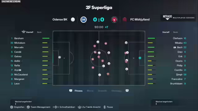 03:43:20Es wird überlegt, die Taktik auf Konter umzustellen und Noah Skowguard zu verpflichten. Im wichtigen Spiel gegen Kopenhagen, dem Clash zwischen der besten Abwehr und dem besten Sturm der Liga, wird auf ein 4-3-3 gesetzt, wobei der Fokus auf den Flügeln liegt. Das Team will auswärts im 4-5-1 agieren und Überzahlsituationen schaffen. In der ersten Halbzeit des Spiels gegen Kopenhagen zeigt sich, dass das Flügelspiel noch nicht wie gewünscht funktioniert, während Kopenhagen gefährlich agiert. In der Halbzeitpause wird überlegt, auf Gegenpressing umzustellen, um die Räume besser zu kontrollieren. Es wird analysiert, dass hohes Pressing in Kombination mit Kontern eine effektive Strategie sein könnte. Nach einer Umstellung in der Aufstellung und Taktik gelingt es Richie, den Knoten zu platzen und ein Tor zu erzielen. Das Team versucht, den Ballbesitz zu sichern, um die Führung zu verteidigen. Trotz einiger vielversprechender Aktionen und Wechsel bleibt es beim 2:1.