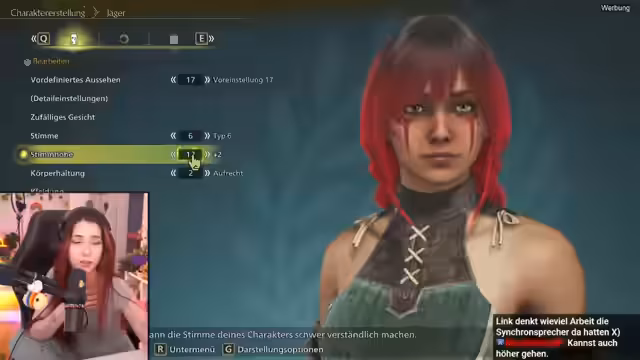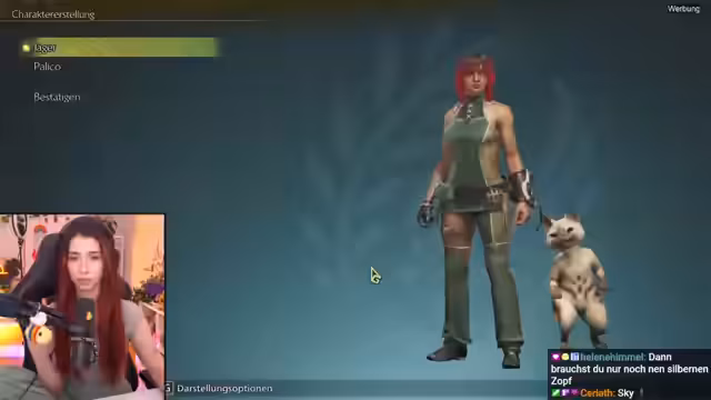 01:19:36Der Stream widmet sich dem Erstellen des Hauptcharakters für Monster Hunter Wilds, beginnend mit der Frisur. Zuerst wird die klassische lange Locke, gefolgt von Zöpfen in Betracht gezogen, wobei die praktische Eignung für das Monsterjagen diskutiert wird. Der Fokus verschiebt sich jedoch schnell auf die Farbgestaltung der Haare. Nachdem ein einfarbiges Rot zunächst als gewünscht galt, erkundet der Streamer intensiv die Möglichkeit von Farbverläufen und Akzentfarben. Es werden zahlreiche Kombinationen durchgespielt, von Rot-Pink und Rot-Schwarz bis hin zu experimentellen Looks wie Rot-Blau, wobei eine Entscheidung zugunsten eines roten Haarschnitts mit einem dunkleren Übergang oder lila Akzenten fällt. Parallel werden Details wie die Haarlänge und Zöpfe angepasst.