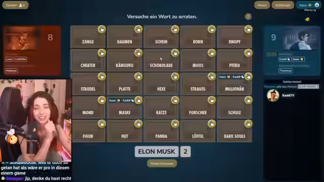 06:34:54Nach dem Gewinn der ersten Runde wurde sofort eine weitere Runde gestartet. Das Spieltempo war hoch, und es kam zu erfinderischen und teilweise skurrilen Verknüpfungen von Wörtern wie 'Schuppen' und 'Geburt'. Der Streamer bewies sich als guter Spielleiter und sorgte für einen reibungslosen Ablauf des Spiels trotz technischer Herausforderungen und der Komplexität der Wörter.