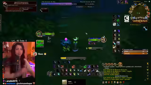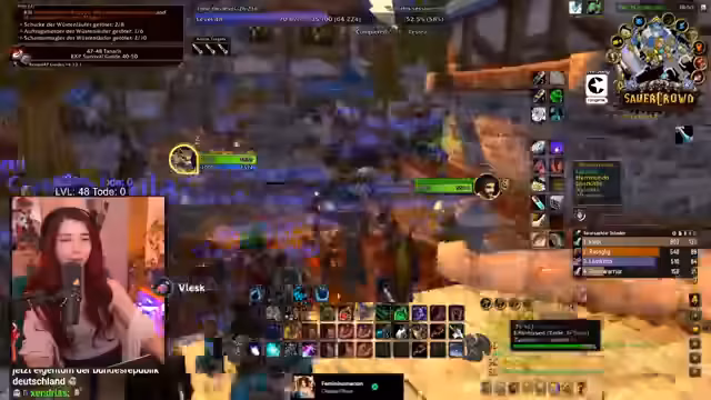 07:51:58Der Streamer zeigt sich frustriert über die harte Arbeit des Loot-Farmens in WoW und beklagt, dass andere Spieler ihre gesammelten Ressourcen klauen. Sie beschreibt den Prozess als Schuften und sieht sich als Opfer von anderen Spielern, die ihr den Farmen erschweren. Trotz der Anstrengungen findet sie gelegentlich Beute wie Blindkraut, wobei sie die Wirkung des Items nicht kennt und von der Anstrengung des gesamten Farm-Prozesses berichtet.
