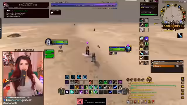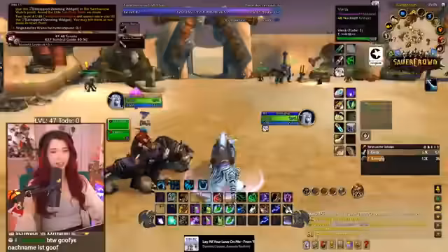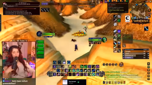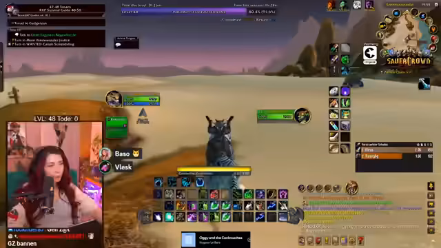 01:21:41Die Gruppe reist nun nach Tanaris, um eine letzte Quest abzugeben, bevor sie sich auf den Weg zu einem neuen Dungeon machen. Unterwegs kommt es zu einem unangenehmen Vorfall: ein Mage in der Nähe hat sie grieved, indem er die Questmob spawnen ließ und sofort wieder lief. Der Streamer kündigt an, dies bei Blizzard zu melden. Anschließend starten sie mit dem ersten Dungeon namens Zul'Farrak.