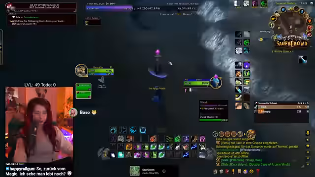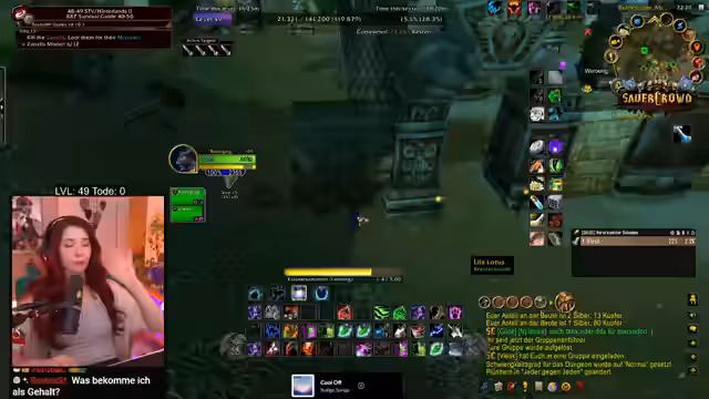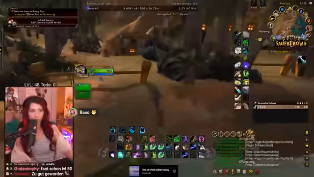 09:09:15Nach Abschluss des Dungeons Sauercrowd blickt der Streamer auf die Belohnung zurück und bewertet das Erlebnis positiv mit 4 von 5 Sternen. Dabei wird auf den erbeuteten Helm, die Füße und den Ring hingewiesen. Anschließend wird der Fortschritt auf Level 49,99 Prozent festgehalten und ein erneuter Vorstoß in das Gebiet Zulfarrack unternommen, um XP zu farmen. Es wird deutlich, dass das Ziel, Level 50 im Stream zu erreichen, knapp verfehlt wurde.