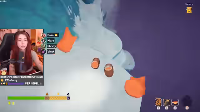 02:11:51Während des Versuchs, Shorty zu retten, verliert die Streamerin ihren Rucksack mit wichtigen Gegenständen. Trotzdem schlägt sie vor, dass Shorty ihre Ausrüstung nutzen solle, um auf den Pilz zu klettern. Ein Mitglied wirft eine Medizin-Spritze in den Rucksack, was den Rucksack unbrauchbar macht, da er sich nicht mehr öffnen lässt. Ein anderer Streamer bietet an, ein Seil zu verwenden, um Shorty hochzuziehen, was aber durch den Nebel und die große Distanz behindert wird.