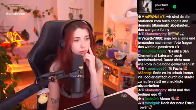 04:00:18Ein Zuschauer fragt nach Reisetipps für Rom. Die Streamerin gibt Empfehlungen für Sehenswürdigkeiten wie das Colosseum, das Pantheon und den Petersdom, und rät, Tickets im Voraus zu buchen. Sie beschreibt ihre Erfahrungen, wie Rom sehr gut zu Fuß zu erkunden sei, und empfiehlt das charmante Viertel Trastavere, das Rooftop-Restaurants mit Aussicht sowie die Besichtigung des Trevi-Brunnens.