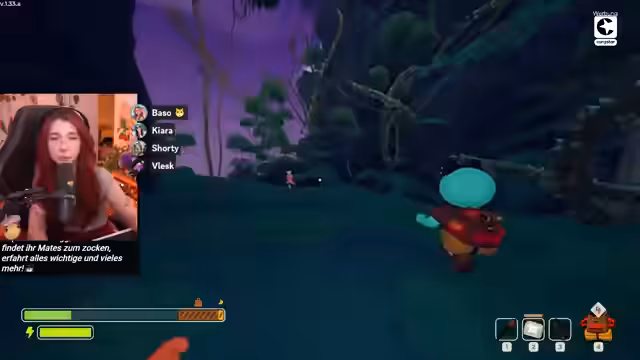 03:08:50Die Gruppe konzentriert sich auf das Sammeln von Gegenständen wie Rucksäcken und 'Zinni-Minis'. Es entstehen Diskussionen über die strategische Nutzung von Items, wie beispielsweise der Energy-Drink für einen temporären Ausdauer-Boost. Die Kommunikation gestaltet sich teilweise unkoordiniert, da die Streamerin über die Funktionen des Spiels, wie das Links- und Rechts-Klicken, unsicher ist.