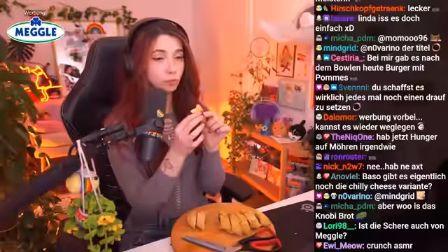 03:29:15Der Streamer beginnt, das Kräuterbaguette zu schneiden. Da ihm sein Messer fehlt, nutzt er stattdessen eine Pizzaschere, um das Baguette zu zerteilen. Diese unkonventionelle Methode kommentiert er humorvoll als innovative Schneidetechnik und fordert den Chat auf, aus gesellschaftlichen Normen auszubrechen und selbst solche Experimente zu wagen. Er erwähnt die Marke Megle, von der das Baguette stammt, und weist auf deren Instagram-Seite sowie mögliche Rezeptideen hin. Er beschreibt, wie man das Baguette mit Tomaten oder Mozzarella belegen kann, um es wie eine Pizza zuzubereiten. Er betont, wie sehr er die Zusammenarbeit mit Megle genießt und wie sich diese in seine Stream-Routine eingebettet hat.