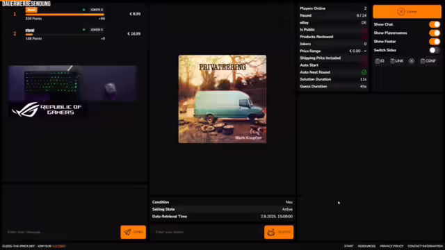 03:55:28Die Streamer starten das Spiel 'Guess the Price', bei dem sie den Preis von Artikeln auf eBay erraten müssen. Anfangs gibt es technische Probleme mit der Website, wie z.B. die Anzeige von Versandkosten anstelle des Artikelpreises und fehlerhafte Punktevergabe. Trotz dieser Schwierigkeiten setzen sie das Spiel fort und passen die Einstellungen an, um das Spielerlebnis zu verbessern. Sie entfernen die Anzeige von Versandkosten und Länderinformationen, um die Verwirrung zu reduzieren. Die Streamer kommentieren die Artikel, die sie erraten müssen, und geben humorvolle Einschätzungen ab. Sie stellen fest, dass die Website im Vergleich zu früher unübersichtlicher geworden ist und vermissen die Streamer-freundliche Gestaltung von früher. Trotz der technischen Herausforderungen und der anstrengenden Bedienung der Website versuchen sie, das Beste aus dem Spiel zu machen und die Zuschauer zu unterhalten.