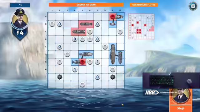 04:53:07Es entwickelt sich ein hitziges Duell, bei dem der Streamer dem Gegner Naivität vorwirft und seine Strategie durchschaut haben will. Er setzt Echolote ein, um Informationen zu sammeln und weitere Schiffe zu vermuten. Der Gegner gratuliert zu einem ordentlichen Schuss, woraufhin der Streamer mit einer GTA Voiceline antwortet. Der Streamer gibt zu, dass er den Gegner durchschaut hat und erinnert ihn daran, dass alle Boote versenkt werden müssen, um zu gewinnen. Er erklärt seine aktuelle Taktik: den Gegner nerven. Der Streamer analysiert die Spielweise des Gegners und versucht, dessen Muster zu erkennen. Er vermutet Minen und versucht, den Bulk an Schiffen zu finden, während er gleichzeitig Minenfeldern ausweichen muss. Frust und Verzweiflung kommen auf, als der Streamer nicht weiß, wo sich das fünfte Schiff des Gegners befindet.