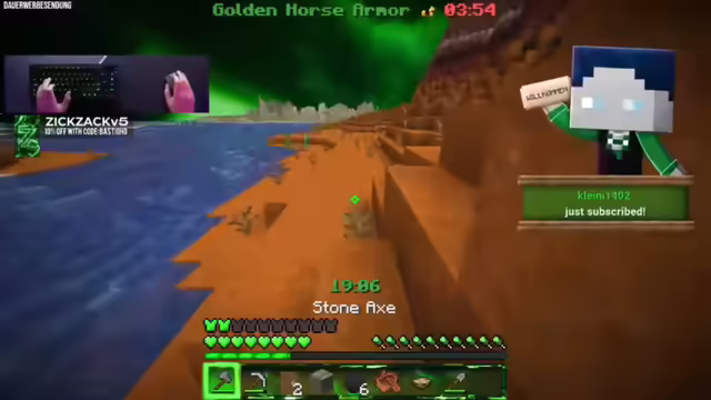 02:23:21Basti und Stegi stehen vor neuen Herausforderungen mit ihren Items. Basti erhält Yellow Glazed Terracotta und Stegi Big Drip Leaf. Basti muss einen Lush Cave finden, während Stegi Terracotta beim Haus des Masons findet. Basti sucht in der Wüste nach einem Azalea-Tree, während Stegi an die Oberfläche zurückkehrt und verschiedene Biome findet. Die Zeit drängt und Stegi findet keinen Lush Cave. Basti findet Bienenstöcke und überlegt, diese mit Silk-Touch abzubauen. Stegi erhält einen grünen Banner und Basti muss Bamboo Mosaik finden. Stegi findet ein Dorf und Basti killt einen Eisengolem für eine Schere. Stegi reitet auf einem Esel und Basti farmt Wolle. Stegi macht die grüne Farbe und Basti wünscht sich Items, die schnell zu bekommen sind. Sie machen Betten und bereiten sich auf die Nacht vor. Basti ist auf anderthalb Herzen und Stegi besorgt Akazienholz.