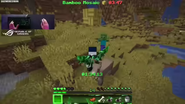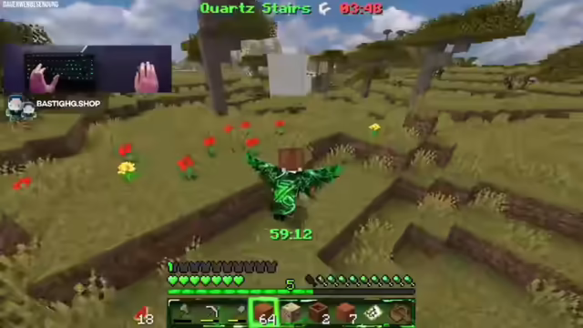 02:31:07Stegi kümmert sich um die grüne Farbe und Basti farmt Bambus mit Knochenmehl. Sie wünschen sich Items, die schnell zu bekommen sind und bauen Betten, um zu schlafen. Stegi ist in einem Dorf und Basti besorgt Akazienholz. Stegi ist auf wenigen Herzen und Basti gibt ihm Essen und Holz. Stegi farmt Eisen und Basti hilft ihm. Sie craften Werkzeuge und bereiten sich auf neue Herausforderungen vor. Basti muss in die Savanne, um Akazienholz zu holen, während Stegi in einer Höhle nach Eisen sucht. Stegi findet Eisen und Basti craftet einen Raw Eisenblock. Sie arbeiten zusammen, um die Items zu bekommen und sich neu auszurüsten. Stegi kümmert sich um Bambus und Basti brät Eisen. Sie benötigen Steinwerkzeuge und einen Eimer. Basti macht sich auf den Weg, um Bambus zu finden und Stegi benötigt ein Boot und eine Kiste. Stegi baut Bambus ab und Basti craftet eine Cobblestone Stair. Sie bedanken sich bei den Zuschauern für die Unterstützung und bereiten sich auf das nächste Item vor.