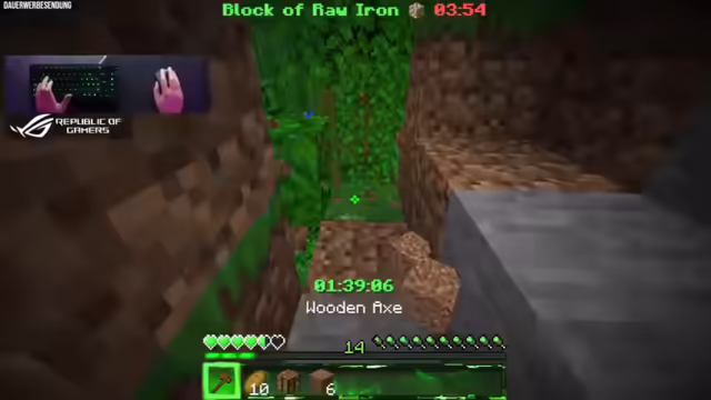 03:04:08In der Minecraft-Welt erkundet einer der Spieler eine Höhle auf der Suche nach Gold und Eisengolems, während der andere sich in den Nether wagt, um dort Gold abzubauen. Es wird über die Effizienz der Goldbeschaffung im Nether diskutiert und die Notwendigkeit, Eisen zu schmelzen, um die Challenge erfolgreich zu meistern. Die Spieler tauschen Gegenstände aus und planen die Rückkehr zum Portal, wobei einer der Spieler etwa 900 Blöcke zurücklegen muss. Es wird kurz über Werbung für Skytrail gesprochen und ein Schläfchen eingelegt, bevor die Goldsuche im Nether fortgesetzt wird. Einer der Spieler sucht nach einer Festung und hofft auf eine stabile Basis mit einem Source & Belly, um schneller voranzukommen und mehr Widder-Skelette zu finden. Währenddessen sucht der andere Spieler in der Oberwelt nach dem alten Portal und sammelt zufällige Blöcke ein.