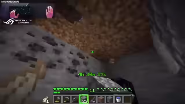 00:59:26Basti ist alleine beim Minen und fragt sich, wo Stegi ist. Stegi erklärt, dass er sich um die Lamas kümmern musste, die ausgebüxt sind. Es wird diskutiert, ob die Lamas noch benötigt werden. Es wird überlegt, was Stegi eigentlich sagt: Poppen oder Procken. Basti findet das Deep Slate abbauen mit einer Steinspitzhacke nicht so toll. Stegi fragt, ob er schon etwas gefunden hat. Es wird überlegt, ob man das Abbauen und Platzieren von Blöcken außerhalb der Border fixen soll. Stegi ist oben auf dem Steg und kämpft gegen Phantome und Zombies. Er war kurz vor dem Sterben.