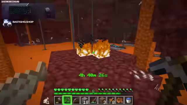 02:01:14Die Streamer beschließen, den Nether zu betreten, um ihn zu erkunden. Sie hoffen, Quarz und eine Festung zu finden. Sie einigen sich darauf, vorsichtig vorzugehen und sich nicht zu weit voneinander zu entfernen. Der erste Eindruck vom Nether ist gefährlich und von Lavaseen geprägt. Die Streamer bauen sich nach oben, um einen besseren Überblick zu bekommen. Sie stellen fest, dass der Nether-Besuch Level kostet und dass sie in ihre Monsterfarm investieren sollten. Sie entdecken verschiedene Biome wie Soul Sand Valley und Crimson Forest. Nach einem kurzen Ausflug kehren sie in die Oberwelt zurück, um ihre Monsterfarm zu verbessern und weitere Vorbereitungen zu treffen.