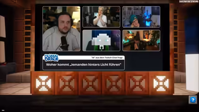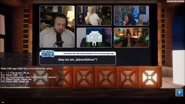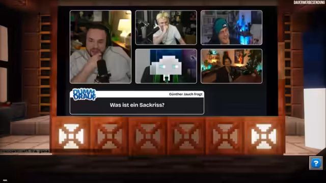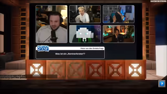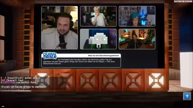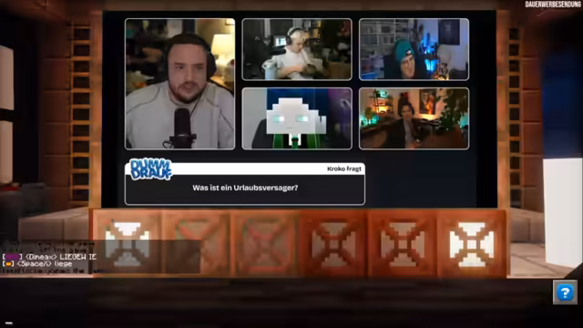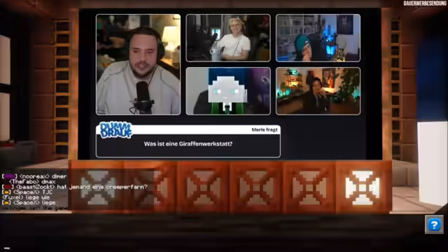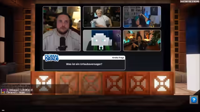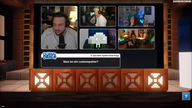 00:37:50Der Streamer bereitet sich auf das Format 'Dumm drauf' mit Papa Platte vor, das in einer Viertelstunde beginnt. Er plant, einen kleinen Fernseher in Minecraft zu bauen, auf dem die anderen Teilnehmer eingeblendet werden. Er erklärt, dass es sich bei 'Dumm drauf' um ein Format handelt, das dem Konzept von 'Genial daneben' ähnelt, bei dem Begriffe erraten werden müssen. Während der Vorbereitungen kommt es zu technischen Problemen mit dem Audio, insbesondere bei anderen Teilnehmern wie Reezmann und Nick, die übersteuern oder deren Kameras gestaucht sind. Der Streamer selbst hatte auch Probleme mit seinem Mikrofonpegel, der sich über Nacht unerklärlicherweise geändert hatte. Trotz der Schwierigkeiten versucht das Team, die Probleme zu beheben und die Stimmung bleibt positiv. Er betont, dass es ein Just-for-fun-Format ist, bei dem es ums Lachen und die Kreativität geht, was in der deutschen Twitch-Landschaft oft fehle.