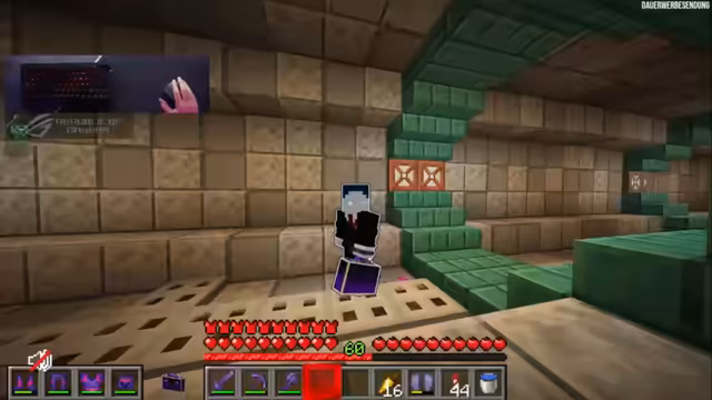 05:24:48Es wird die Möglichkeit von TNT-Fallen in der eigenen Base diskutiert, was von Chat-Nachrichten angedeutet wird. Die Spieler sind sich unsicher, ob solche Fallen bereits platziert wurden oder ob es sich um eine zukünftige Bedrohung handelt. Ein Spieler erklärt, wie man Tools unsichtbar an Trip-Wire-Hooks aufhängen kann, indem man Armour-Stands und ein spezielles Buch verwendet, um sie in Tool-Racks zu verwandeln. Dieser Build-Hack wird als „giga fresh“ und „über nice“ empfunden. Es wird auch über die Unterschiede zwischen Minecraft Java und Bedrock Edition gesprochen, wobei die Java-Version aufgrund der besseren Modding-Möglichkeiten bevorzugt wird. Die Bedrock-Version wird als „verbuggt“ und „unangenehmer“ in Bezug auf Bewegung und Feinheiten beschrieben.