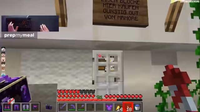 04:44:40Der Streamer plant den Bau eines Weges, der als Zugang von oben zum "Loch" dienen soll, und sucht nach einem geeigneten Spot, an dem man über einen Gully herunterfallen kann, um in die Kanalisation zu gelangen. Währenddessen bemerkt er, dass sein Container zunehmend zu einer Werbefläche für andere Shops wird, was er humorvoll kommentiert. Er unternimmt einen Abstecher zum Shopping District, um sich die verschiedenen Shops anzusehen. Dabei fallen ihm der Trödelladen mit ständig neuen Items, ein Schalker Shop und ein Blackstone Shop auf, die Diamanten für Blöcke anbieten. Er stellt fest, dass im Shopping District nicht mehr viel los ist, da viele Spieler ihre eigenen Farmen gebaut oder direkt miteinander gehandelt haben. Er erkundet auch die Bauprojekte anderer Spieler, wie Isas Haus, das Matterhorn von Adi und Elinas Bauwerk, sowie das League of Legends Projekt von Chef Strobel. Die Verwendung von Mods wie Voxy und Bobby für eine bessere Server-Übersicht und Renderdistanz wird ebenfalls erwähnt.