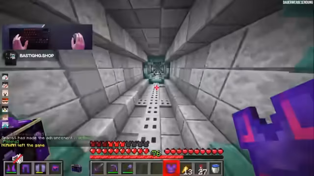 00:24:35Der Streamer trifft auf Dima, Veto und Heiko, die ebenfalls fleißig an der Kanalisation arbeiten. Es wird deutlich, dass die Kanalisation weiter wächst und sich mit den Basen anderer Spieler verbindet, was von Anfang an das Ziel war, um eine Verbindung zu schaffen, bevor Raketen und Elytren verfügbar waren. Er bespricht mit Heiko die Platzierung des Dracheneis und die Notwendigkeit einer simplen Kolbentür für das Jump'n'Run, die ein Redstone-Signal vom Item erhalten soll. Zudem benötigt er weitere Türen für die Kanalisation, da diese für alle geöffnet werden soll und bestimmte Bereiche wie das Labor oder Gefängnis gesperrt bleiben müssen, eventuell mit Keycard-Systemen. Heiko zeigt ihm seinen Maschinenraum, der geflutet und im Stil eines dreckigen und öligen Maschinenraums gestaltet ist, was dem Streamer sehr gefällt. Sie tauschen sich über die Ladekapazität von Heikos Schiff aus und der Streamer erhält Raketen.