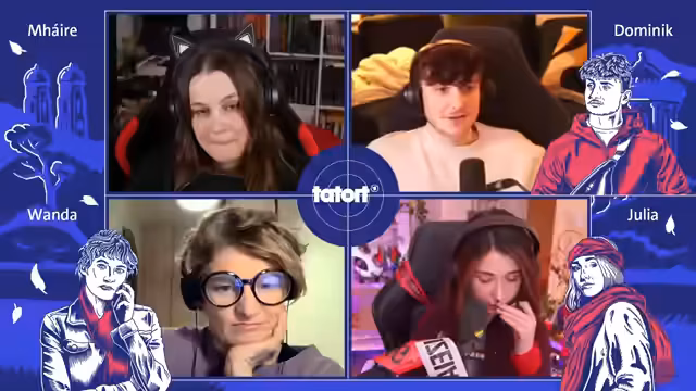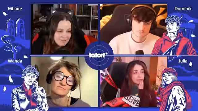 01:42:28Das vierte Tatort Pen & Paper in Zusammenarbeit mit ARD und Bayerischem Rundfunk wird eröffnet. Es ist bereits das fünfte Pen & Paper Event des Jahres auf dem Kanal, mit Verweisen auf frühere Projekte wie den Bauernkrieg 1525, Drehschuss, Vandoria und Fehlerm-System. Das Spielprinzip des Pen & Papers wird kurz erklärt: Es handelt sich um improvisiertes Erzählen mit einem einfachen Würfelsystem, bei dem sechsseitige Würfel für sechs Charakterwerte verwendet werden. Erfolge werden bei einer 4, 5 oder 6 gewertet. Die Charaktere und ihre Spieler werden vorgestellt: Eli Wasserscheid spielt Wanda Goldwasser, eine Kommissarin aus Franken, die als neugierig, direkt und mit großem Gerechtigkeitssinn beschrieben wird. Baso verkörpert Julia Kröll, eine freiheitsliebende, sportliche Bergmädchen-Kommissarin, die jedoch an diesem Wochenende mit Magen-Darm zu kämpfen hat und eher logisch und streng vorgeht. Kani (Lukas) spielt Dominik, einen technikaffinen Aushilfs-Kommissar, der das Abenteuer sucht und gerne die Julia ein bisschen ärgert. Technische Probleme mit Basos Kamera werden kurz behoben, um eine bessere Bildqualität zu gewährleisten. Der Discord-Server des Bayerischen Rundfunks wird als Informationsquelle für weitere Fragen genannt, und das Moderationsteam sowie die Künstlerin Carina, die die Artworks erstellt hat, werden gewürdigt.