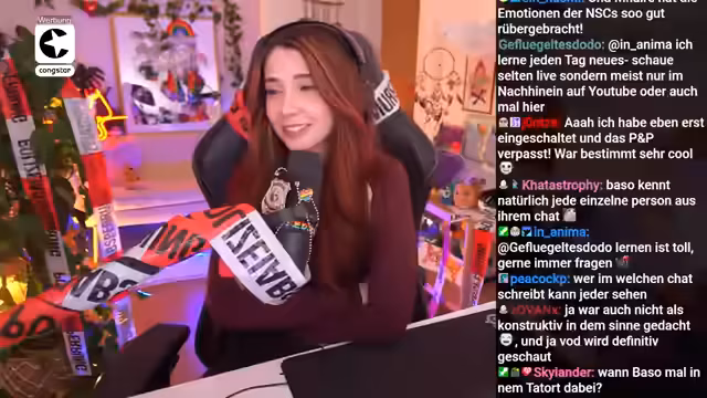 03:20:54Julia, Wanda und Dominik besprechen ihre ersten Eindrücke. Julia äußert Zweifel an einem Motiv des Chorleiters, da dieser nicht einmal Beppis Nachnamen oder seine Baufirma kannte und die Auseinandersetzungen eher nach einem kleineren Nachbarschaftskrieg klangen. Dominik stimmt zu und findet den Chorleiter am Ende sogar sympathisch. Wanda wundert sich, warum Frau Kowalewski fragte, ob sie in München bleiben müsse, obwohl sie entlassen wurde. Sie überlegen, ob dies ein Hinweis auf eine mögliche Verwicklung sein könnte. Marie, die Sekretärin, die den Tee anbot, fiel ihnen auf, da sie am meisten mitgenommen wirkte, obwohl es auch Verwandte des Opfers gab. Dies bleibt ihnen im Gedächtnis. Sie beschließen, eine kurze Pause einzulegen, um die Gedanken zu ordnen und Namenslisten zu erhalten, bevor sie den Stream fortsetzen. Während der Pause wird ein Hund gezeigt und es gibt eine Ankündigung für eine Mitsing-Aktion des Bayerischen Rundfunks am 21. des Monats, bei der zwei Karten für ein Festival zu gewinnen sind. Dafür muss eine E-Mail an br-nexttwitch.br.de mit Namen, Alter über 18 und einem möglichst schlechten Chornamen geschickt werden.