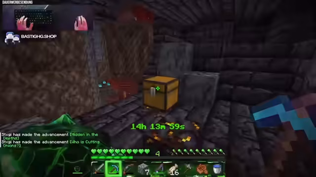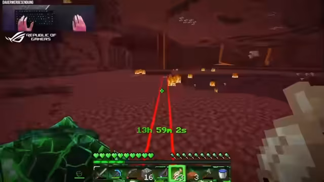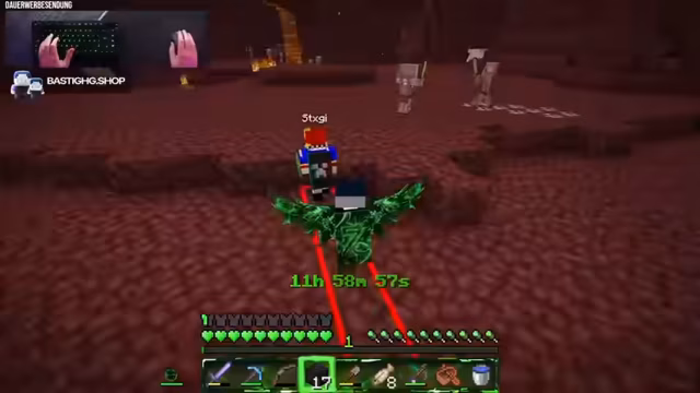 03:00:20Die Streamer erkunden gemeinsam eine Nether-Bastion, um Eisen und andere Ressourcen zu farmen. Sie entscheiden sich, in einer Richtung weiterzugehen, um neue Informationen zu erhalten. In einer Kiste finden sie Eisenblöcke und Rüstung. In einer weiteren doppelten Kiste stoßen sie auf einen Eisenblock, Obsidian und Axt. Es kommt zu einem mobilen Kampf, bei dem die Streamer Schaden nehmen, aber die Situation meistern.