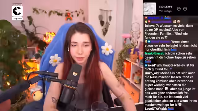 00:15:33Die Streamerin enthüllt nach anfänglicher Zögerlichkeit, dass sie vor zwei Wochen eine ästhetische Nasenoperation hatte, da sie seit vielen Jahren unzufrieden mit ihrem Aussehen war. Sie erklärt, dass sie auf der Nase noch einen großen Verband trägt und geschwollen ist, und betont, dass dies eine rein private Entscheidung war und sie nie im Stream oder online darüber gesprochen hat, weil sie das Thema als sehr intim ansieht.