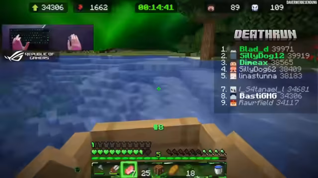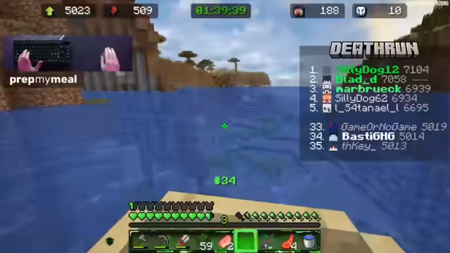 02:08:19Im aktuellen Deathrun-Event werden strategische Entscheidungen überlebenswichtig. Die Wahl, aus sechs Eisen einen Eimer anstelle eines Schildes oder einer Schere zu fertigen, wird diskutiert, wobei ein Schild langfristig mehr Sicherheit bieten könnte. Es wird überlegt, einen Smoker aus vier Öfen zu bauen, um Essen schneller zu braten, was bei häufigem Bedarf sehr sinnvoll wäre. Der Abstand zur Top 5 beträgt bereits 2000 Blöcke, was eine erhebliche Herausforderung darstellt. Nether ist nicht erlaubt und der '49er'-Bug, der früher das Annehmen von Fallschaden in einem Boot ermöglichte, wurde behoben. Der Spieler freut sich über die positive Resonanz der Community auf das Deathrun-Format, welches sich als eines der beliebtesten über Jahre etabliert hat und immer wieder Potenzial für neue Versionen bietet. Es wird betont, dass es keine Regeneration in diesem Ultra-Hardcore-Modus gibt, was jede noch so kleine Verletzung, wie ein halbes Herz Schaden, besonders ärgerlich macht.