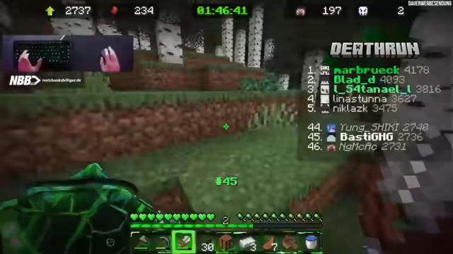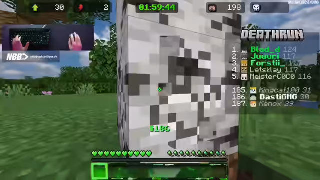00:37:17Nach erfolgreicher Whitlist-Vergabe und einer kurzen Pause startet der Deathrun. Nach etwa 15 Minuten spawnen die ersten Monster, was die Gefahr erheblich erhöht und zu einem schnellen Anstieg der Todesfälle führt. Der Streamer, sich auf gute Ausrüstung konzentrierend, verliert zunächst viele Plätze, baut diese aber durch das Sammeln von Ressourcen wie Eisen und Leder wieder auf. Es wird das Ziel betont, am Ende der zwei Stunden auf Platz eins zu stehen, und nicht, am Anfang führend zu sein.