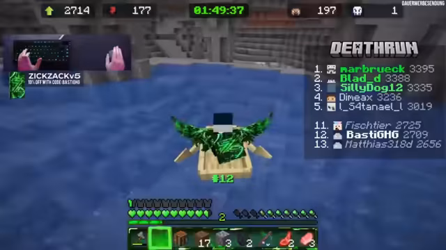 00:15:04Für die Teilnahme am Deathrun ist eine Whitelist erforderlich, die über Channel Points eingelöst werden kann. Der Startpreis liegt bei einer Million Punkte und wird schrittweise auf 200.000 Punkte gesenkt, um mehr Teilnehmern die Möglichkeit zu geben. Die Teilnehmer müssen ihren Ingame-Namen in der Beschreibung eintragen, um auf dem Server in der Minecraft-Version 1.21.4 mit der IP basti.grg.run joinen zu können. Es wird darauf hingewiesen, dass PvP indirekt durch Lava-Setzen verboten ist, um den Spaß für alle zu erhalten.