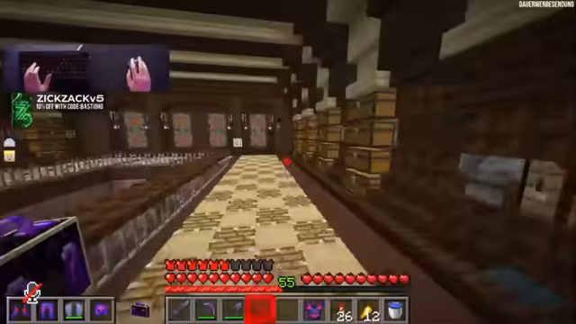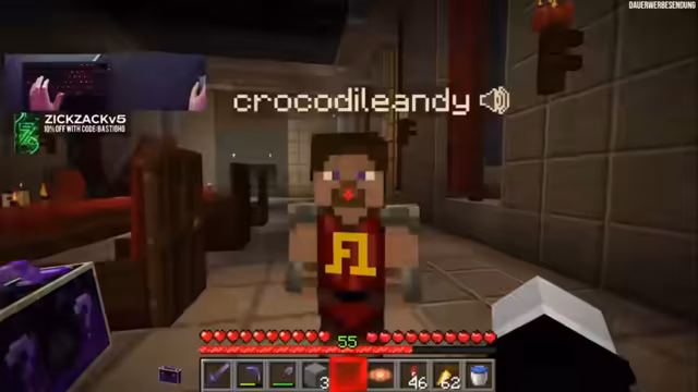 03:12:36Kroko lädt den Streamer ein, seine eigene Base zu besichtigen, die noch ausbaufähig ist, aber eine klare Vision hat. Sie fliegen zum Shopping District, da es kein direktes Portal zu Krokos Base gibt. Kroko zeigt seinen Antiquitäten- und Secondhand-Laden, in dem bereits ein Item verkauft wurde. Er enthüllt ein seltenes Item, dessen Herkunft nicht ganz legal zu sein scheint. Sie gelangen über einen geheimen Eingang in Krokos Base, die sich im Untergrund befindet. Kroko präsentiert eine Skizze seiner zukünftigen Base, die ein großes Gebäude mit einem Baum und pinken Blöcken umfasst. Er erklärt, dass er Craft Attack länger spielt als die meisten anderen und sich Zeit nimmt, um seine Projekte zu realisieren. Die Skizze hilft den Leuten, seine Vision zu verstehen, da seine Basen am Anfang oft wie Ruinen aussehen. Die Blockpalette mit pinken Blöcken und Kirschholz wird gelobt. Kroko erwähnt, dass er am Anfang Schwierigkeiten hatte, Purpurblöcke für die Dächer zu bekommen, da das End noch nicht zugänglich war. Er wurde von Bastien unterstützt, der ihm Netherholz besorgte. Kroko führt den Streamer weiter durch seine Base, zeigt eine Taverne mit einem friedlichen Pillager und eine kleine Minischmiede. Er plant, zwei große Treppenhäuser und geheime Gänge einzubauen, um die Basis spannend zu gestalten. Das Gebäude wird Etage für Etage hochgezogen, um ein Gefühl für die Proportionen zu bekommen. Die unteren Räume sollen bald eingerichtet und mit Mini-Farmen und Villagern ausgestattet werden, um einen Nutzen zu haben und nicht nur Fassade zu sein. Die Farbkombination von Purpur und Karmesin wird diskutiert, wobei Karmesin nur als Kontur verwendet wird, da es zu dunkel ist, um es zu mischen. Kroko ist zufrieden mit dem Fortschritt und freut sich darauf, weiterzubauen.