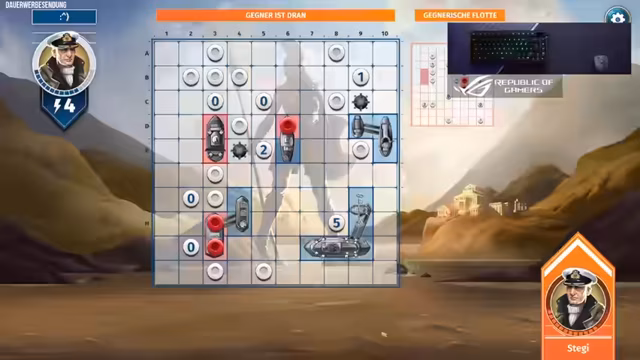 04:01:28Nachdem sie Minecraft für den Moment beendet haben, wechseln die Streamer zu einem anderen Spiel: Schiff versenken. Sie planen, nur eine Runde zu spielen, um den Spielstil frisch zu halten. Das Spiel wird als Best-of-3-Serie angesetzt und die Streamer tauschen sich über die Spielstrategien und Fähigkeiten des Gegners aus. Sie sind gespannt auf das Spiel und analysieren die Züge des anderen, um eine möglichst erfolgreiche Runde zu spielen.